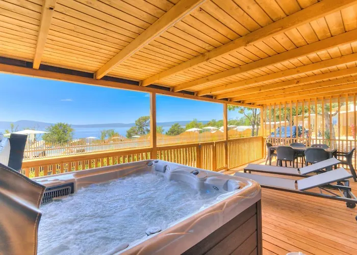 Mobile Homes Selce - Alpe Jadran Mobil 641 tilbyder værelser med udsigt over havet i nærheden af Beach Poli Mora. Et påklædningsområde, en sofa, kaffe- og tefaciliteter og et køkken med en mikrobølgeovn, en el-kedel og et køleskab er til rådighed på denne campingplads.
